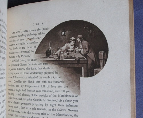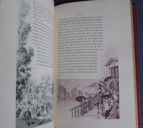 Hardback. viii,138pp. Social history of these once indispensable articles of a ladies’ dress. Bound in full red Morocco. Illustrated by Paul Avril. Raised bands to spine. Gilt titles to spine with gilt device to remaining compartments. Gitl decoration to both boards. Gilt dentelles. Stamped in gilt bound by Southran and Co. to margin of front board. Marbled endpapers. Gilt to all edges. First UK edition published the same year as the French original, L'ombrelle – le gant – le manchon, was published. Octave Uzanne was best known as a literary critic but he was also interested in the history of fashion.