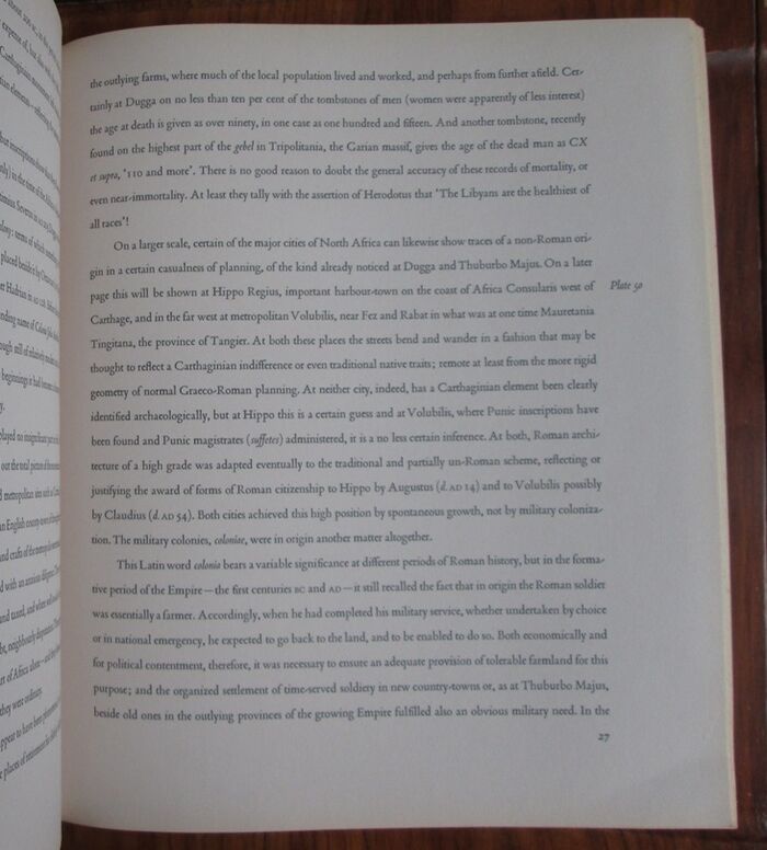 Hardback. Text by Mortimer Wheeler and illustrated with 59 hand-mounted colour photographic plates by Roger Wood. A substantial volume on the archaeology of Roman Africa including Sudan, Egypt, Cyrenaica, Triplolitania, Tunisia, Algeria, Morocco. 360 by 290mm (14¼ by 11½ inches). Illustrated endpapers.