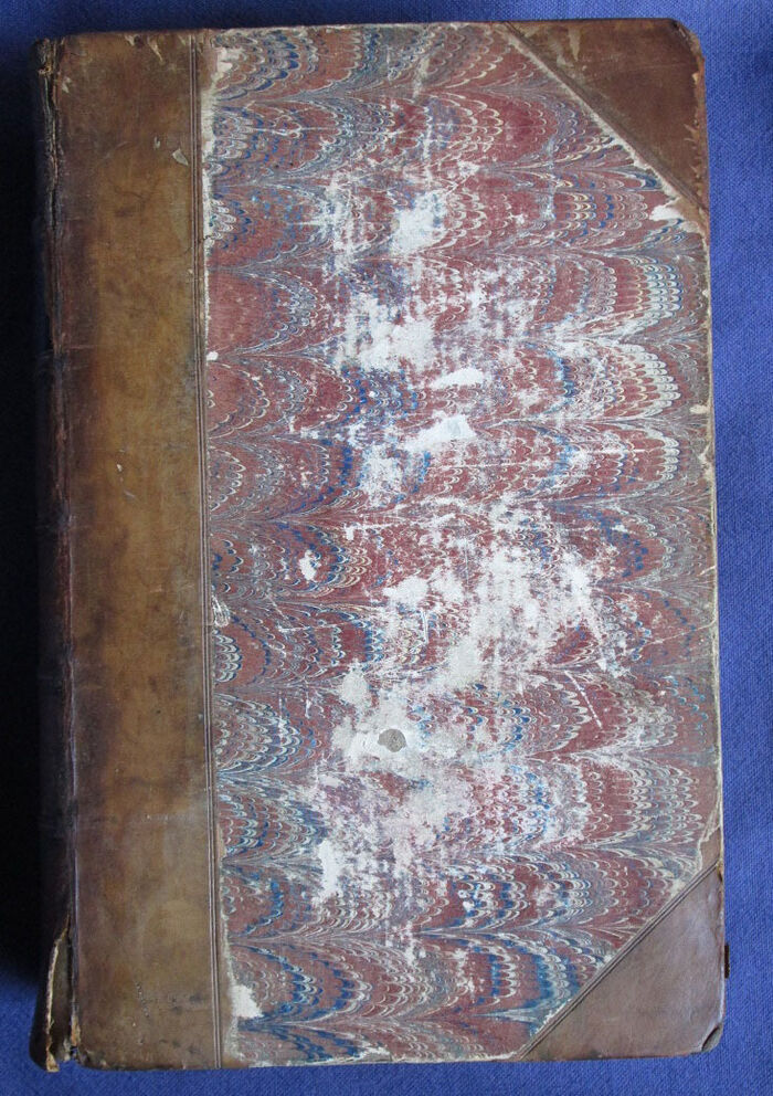 Half bound in leather with marbled paper to boards. 1064pp. Raised bands to spine with black label and gilt titles. Ex libris label and signature of book binder Herbert E. R. Dorant.