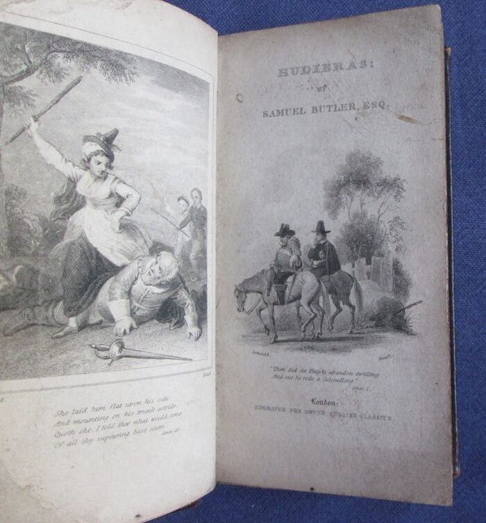 Hardback. Full leather binding to this early nineteenth century edition of the satirical poem of the English Civil War. Illustrated title page with engraved vignette and further engravings to the start of each of the nine parts and to The Lady’s Answer to the Knight. 135 by 80mm (5¼ by 3¼ inches). Lettered in gilt to the spine.