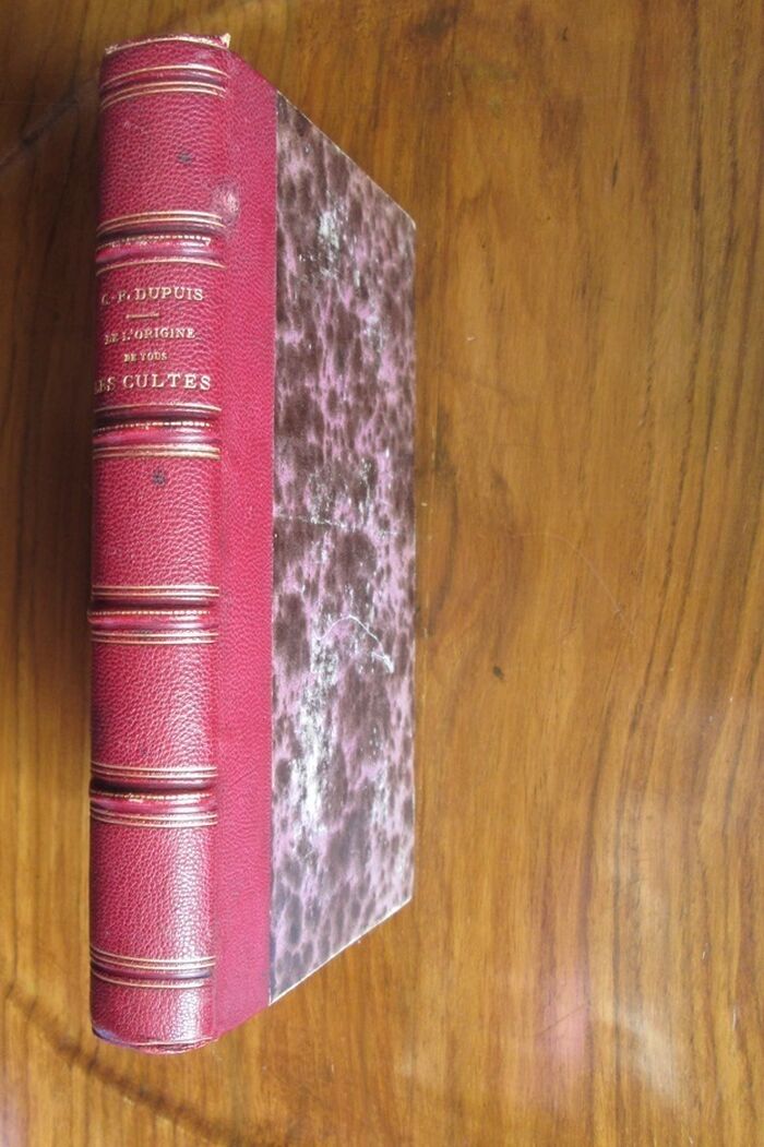 Hardback. Quarter bound in leather. Text in French. Charles-François Dupuis 1742-1809 developed the Christ myth theory that was a fringe consideration as critical history developed during the Enlightenment. Dupois argued that the concept of Jesus was not a historical man but rather a development and amalgamation of myths ans religious ideas from many sources. Red leather to spine with patterned papers to boards. Spine has gilt ruled raised bands and gilt titles. Marbled endpapers.