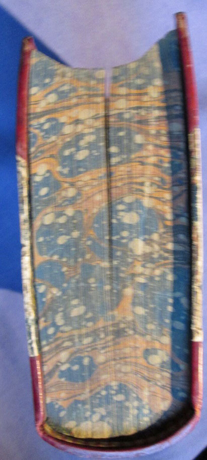 | Notes | Slightly faded to spine, marbled papers are surface scuffed tom front and back, and worn to edges where there is some slight splitting and peeling. Small rectangle snipped put of ffep (previous owner’s name?). Clean and sound. |