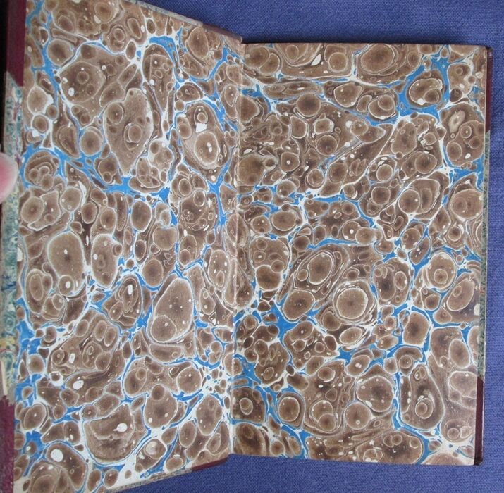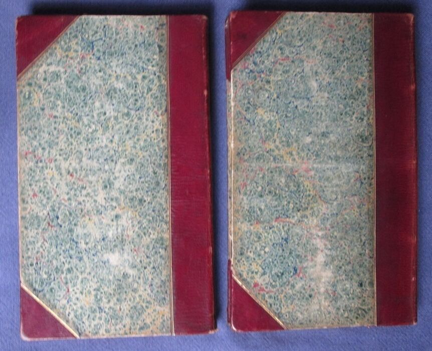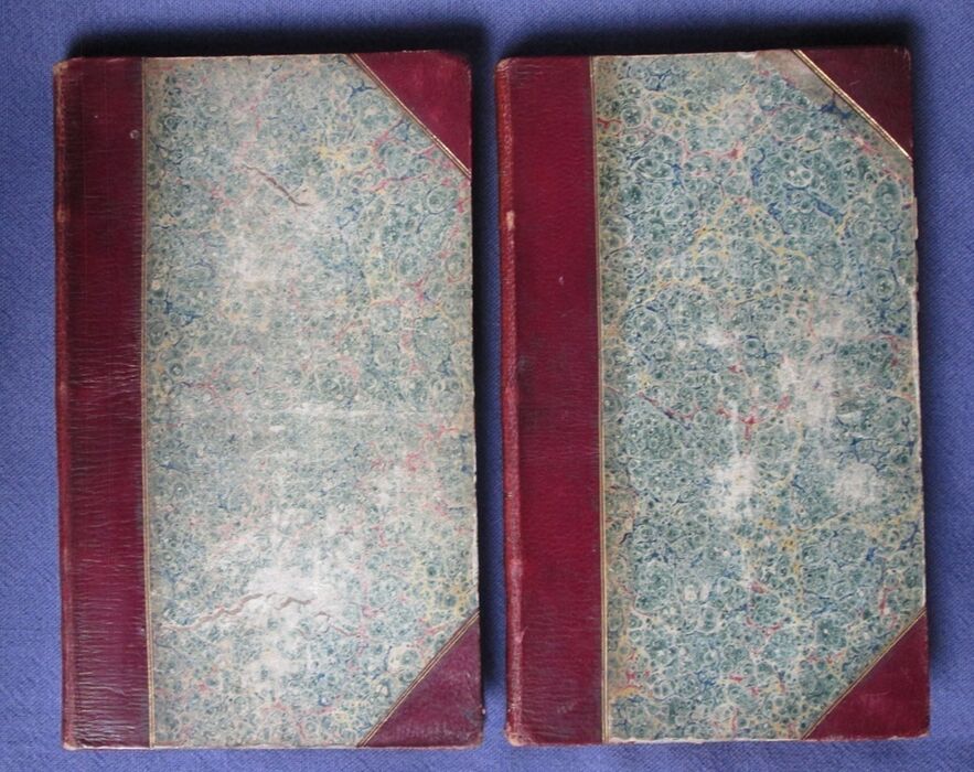 | Notes | Leather is slightly scuffed with some tiny areas of surface loss some wear to the corner tips and the spine ends. The marbled paper is slightly surface scuffed and peeling slightly to the very edges. Binding is sound. The volumes are clean. There is some age toning spots and marks to the prelims and occasionally to the margins. |