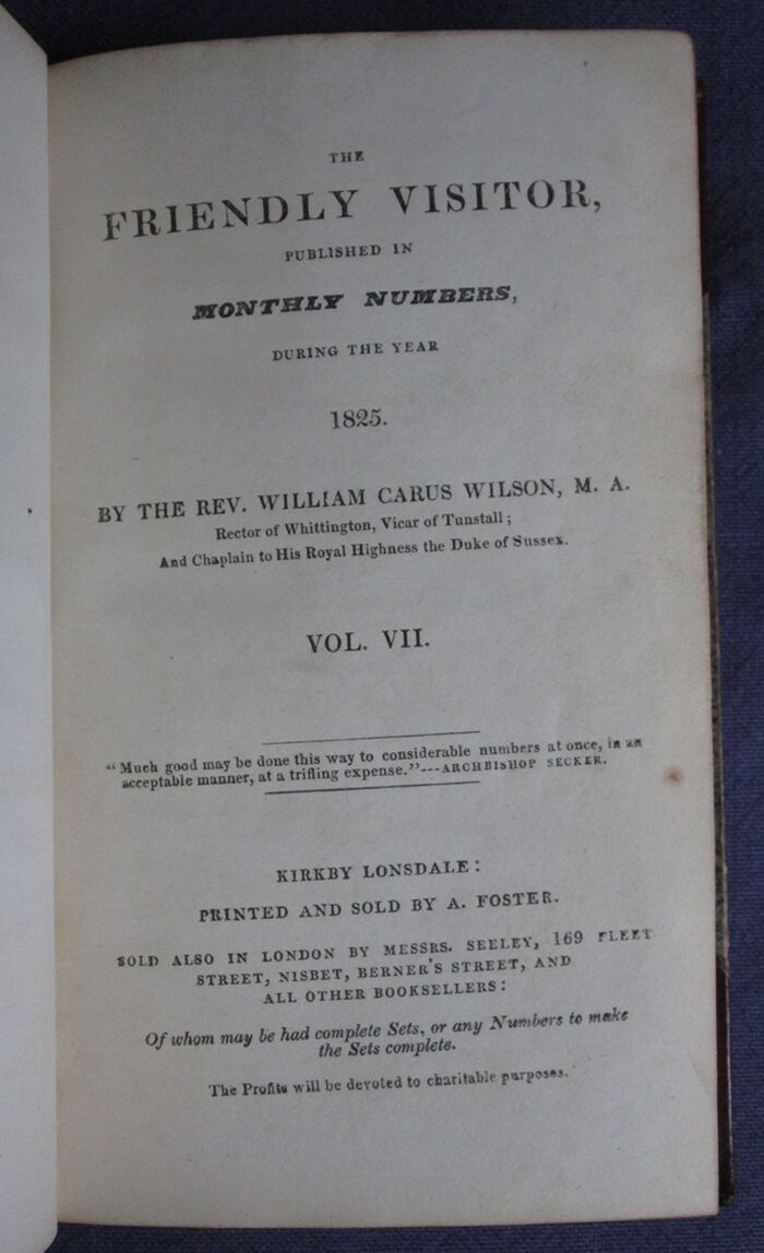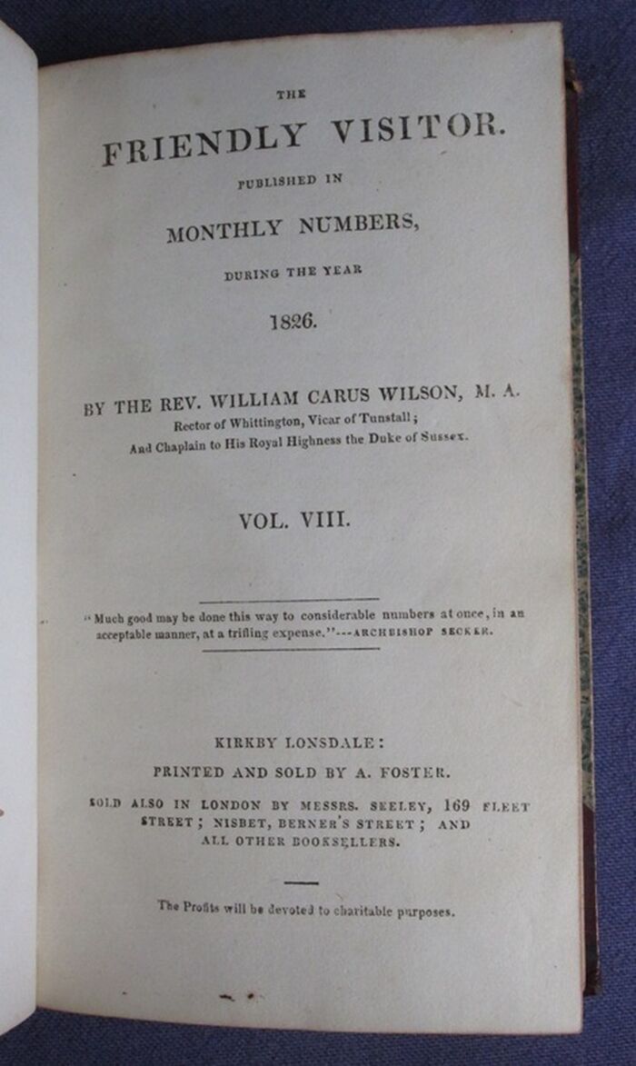 The Friendly Visitor Vol. VII and Vol. VIII Published in Monthly Numbers during the year 1825 and 1826 - Two volumes