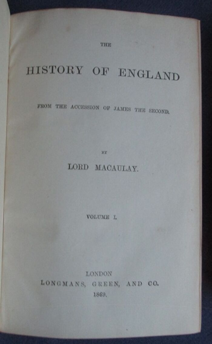 Hardback. viii,394+viii,359+viii,413+vii,391pp. Four volumes complete in two volumes ending with the death of William III, bound in full leather. Red leather has raised bands and gilt decorations to spine. Double ruled in gilt as a border to the boards. Both volumes stamped in gilt to the upper board with a school’s crest. Marbled endpapers. Gilt to all page edges. Marbled endpapers.