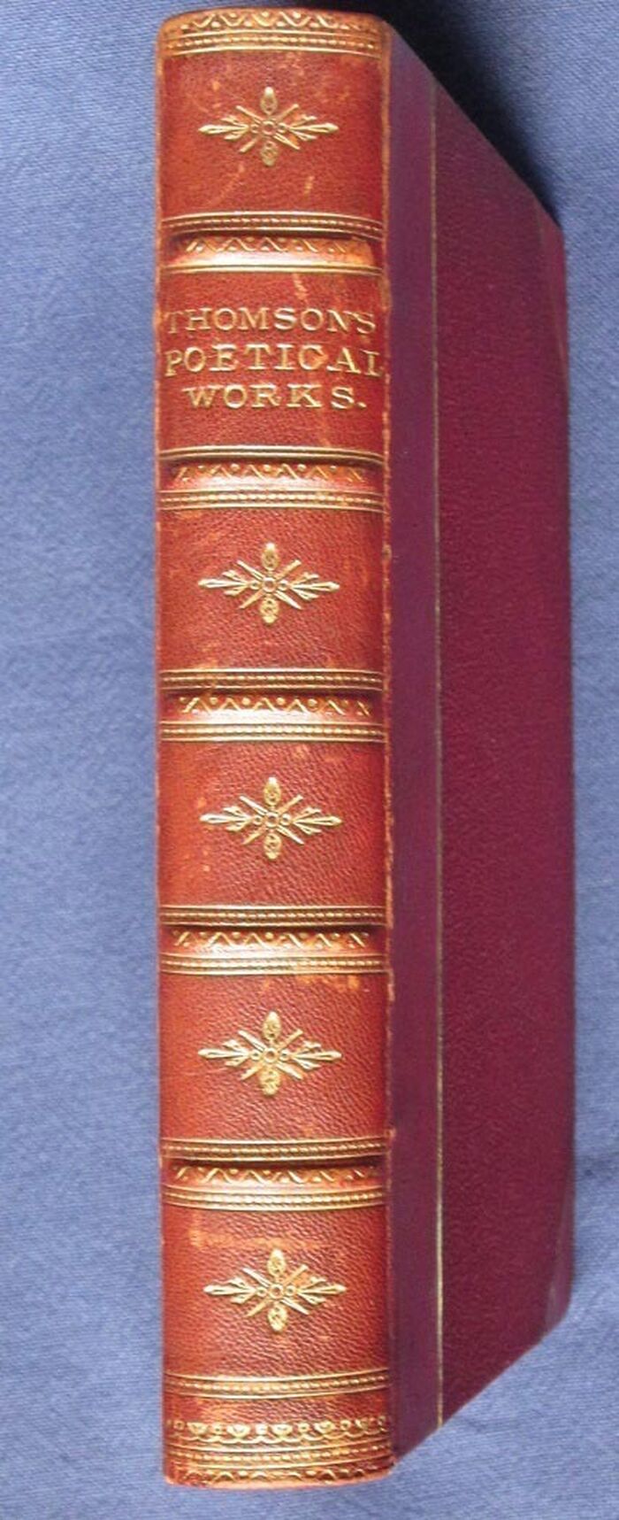 Hardback. xliii, 498pp. The Seasons; The Castle of Indolence; Liberty; Amanda; Songs in the Masque of Alfred (including Rule, Britannia! and variations); Misc poems, etc. Extensive introductory material includes a Life of James Thomson. Half bound in maroon leather with raised bands and gilt titles to the spine, and gilt lines bordering the textured maroon cloth to the boards. Marbled endpapers with previous owner’s label Henry James Prytherch, (who received the MBE in 1918). Engraved frontispiece, illustrated title page, vignette title page and 11 further plates. Text handsomely presented within red-line borders throughout.