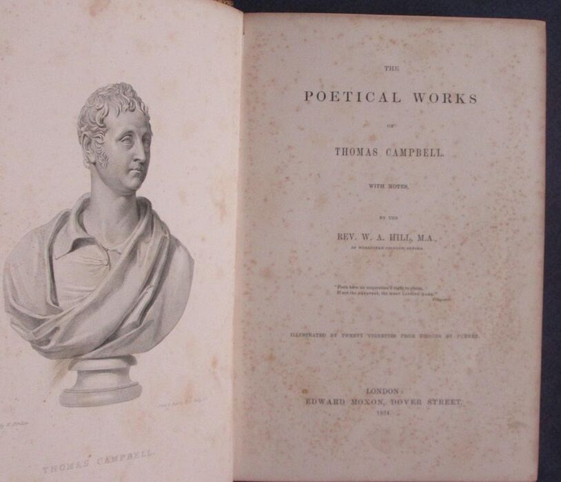 Hardback. xi, 403pp. With notes by W. A. Hill. Attractive leather binding. Gilt to all edges. Ribbon. Includes Gertrude of Wyoming as well as other poems including Ye Mariners of England (A Naval Ode), Glenara, Battle of the Baltic (Nelson and the naval Battle of Copenhagen in 1801), Lochiel, Hohinlinden, Ode to Burns, and Lord Ullin’s Daughter. 200 by 140mm (7¾ by 5½ inches).