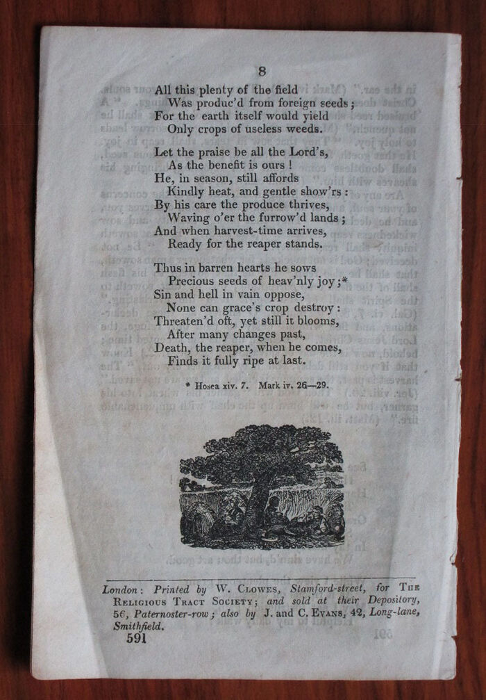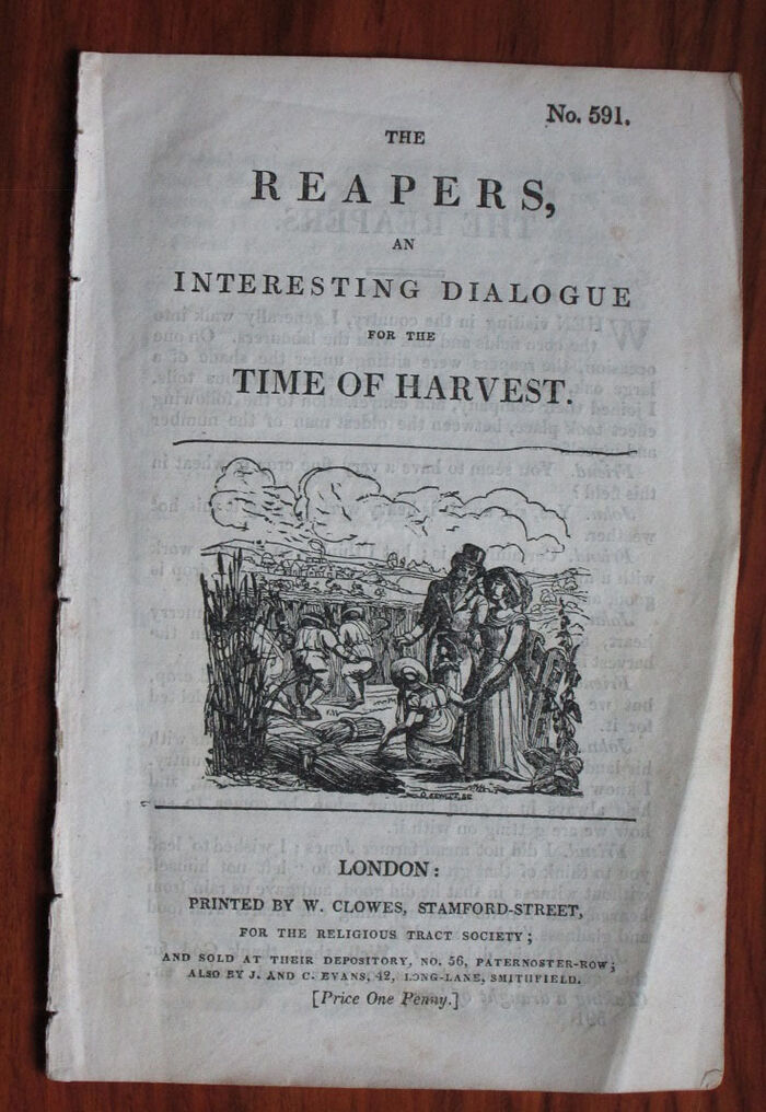 Victorian religious dialogue pamphlet. Tract number 591. Engraving to front and back.