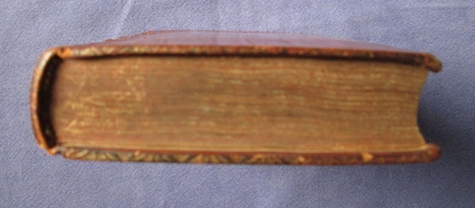 | Notes | Front hinge split and held only by one cord, rear hinge tender. Though the binding is rather fragile the gatherings remain tightly bound and square. Pages show some age toning to the very edges, more so towards the beginning and end of the text block. Starting to crack vertically down the middle of the spine. Prelims are unevenly tanned. Rubbed to edges with the tips of the board showing to two corners. Some slight scuffing to the surface of the leather. |