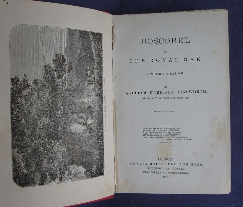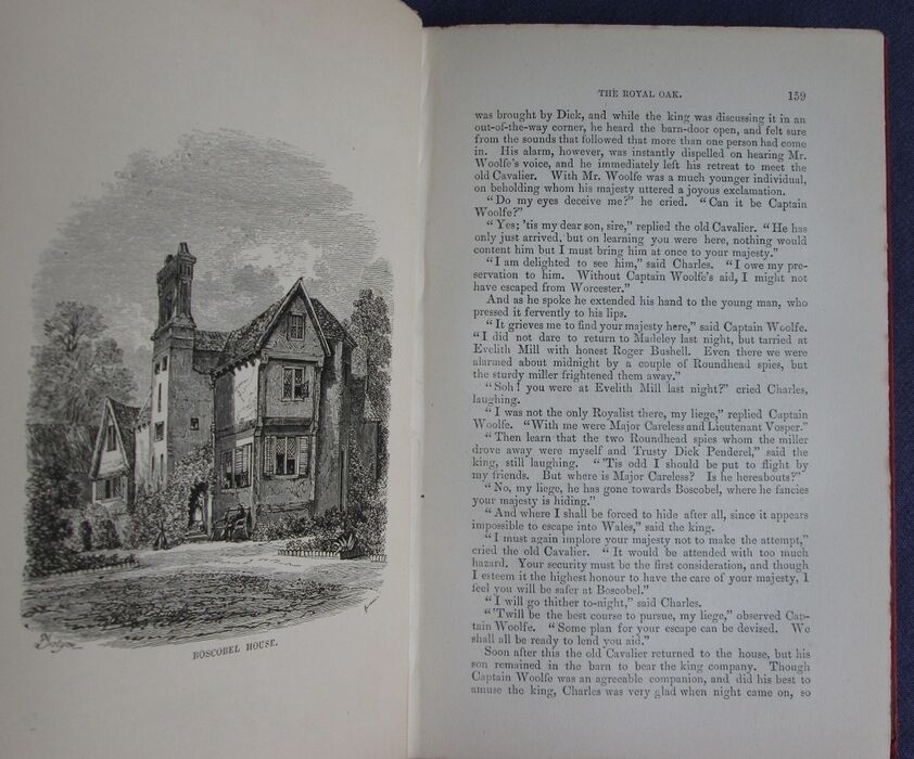 Hardback. Historical novel fictionalising the flight of the later Charles II after the execution of Charles I; from the the writer most famous for the Lancashire Witches. Original red cloth, lettered and decorated in black on front board, in black and gilt on spine; decorated endpapers. Black and white frontis plus further illustrations by J. H. Rimbault. Red cloth with black titles and decorations including a small illustration to front board and titles and decoration in black and gilt on spine. Patterned endpapers.