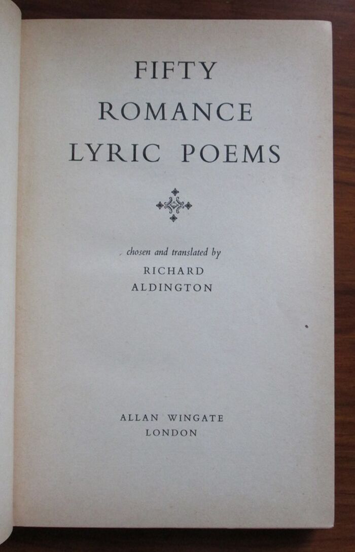 Hardback. 199pp. Poems chosen and translated by Richard Aldington. Poems are mainly French and Italian. Introductory note to each poet.