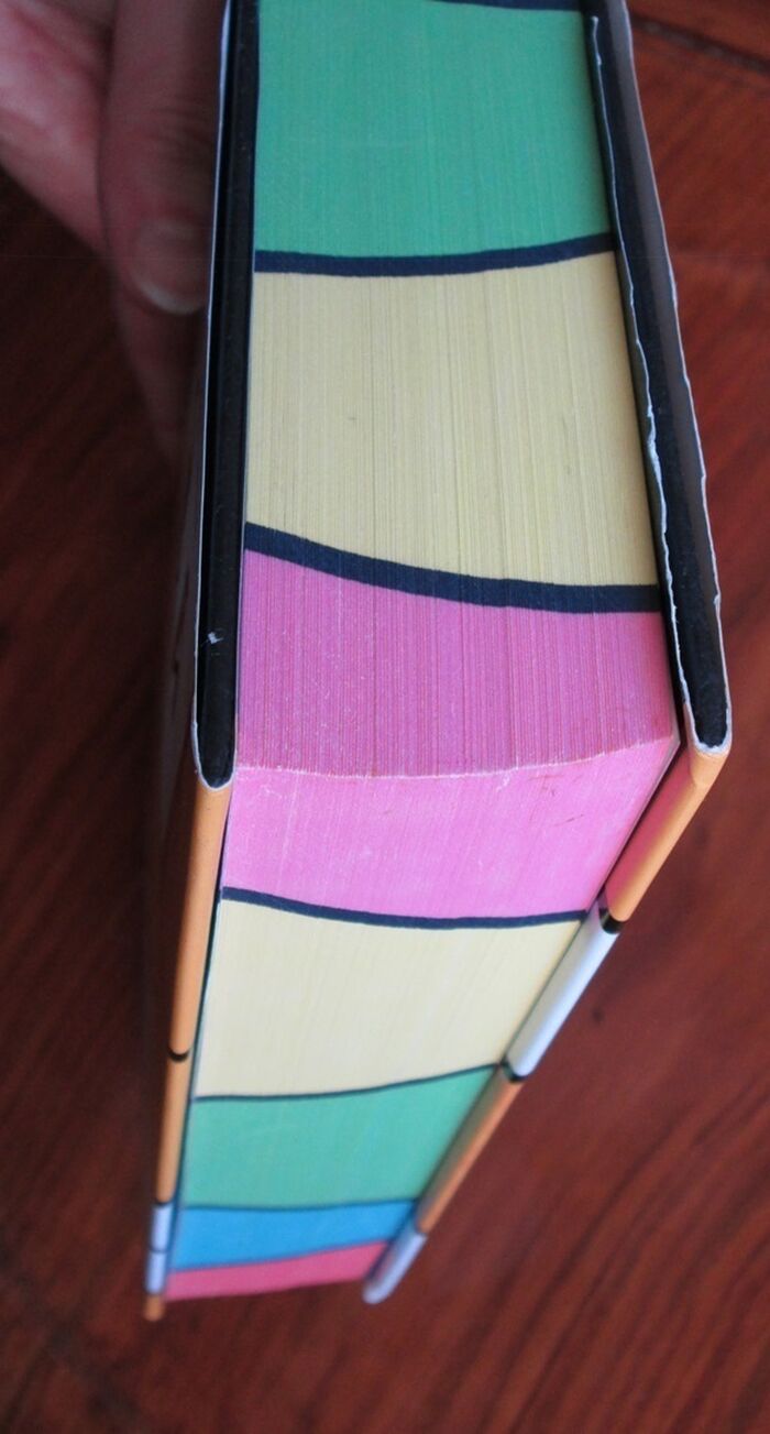 Hardback first edition. Sprayed edges in a brightly coloured pattern to match the dust jacket.