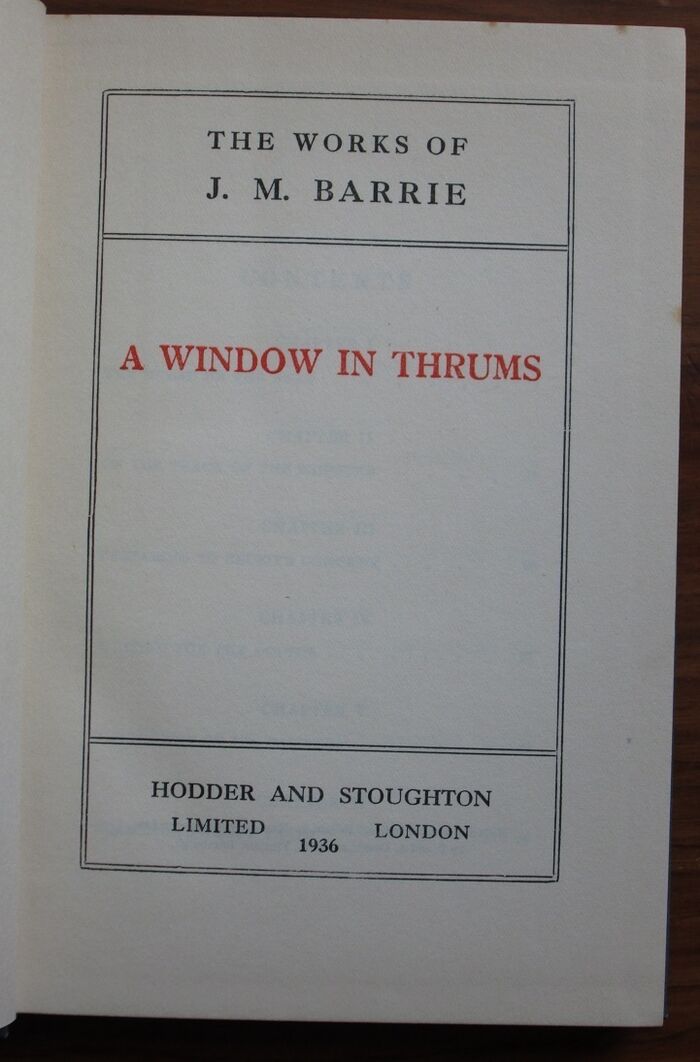Hardback. Barrie’s second novel. Fiction set in the Scottish town of his mother’s youth renamed ‘Thrums’. Blue cloth with printed paper labels to both spine and upper board. From the Uniform Edition.