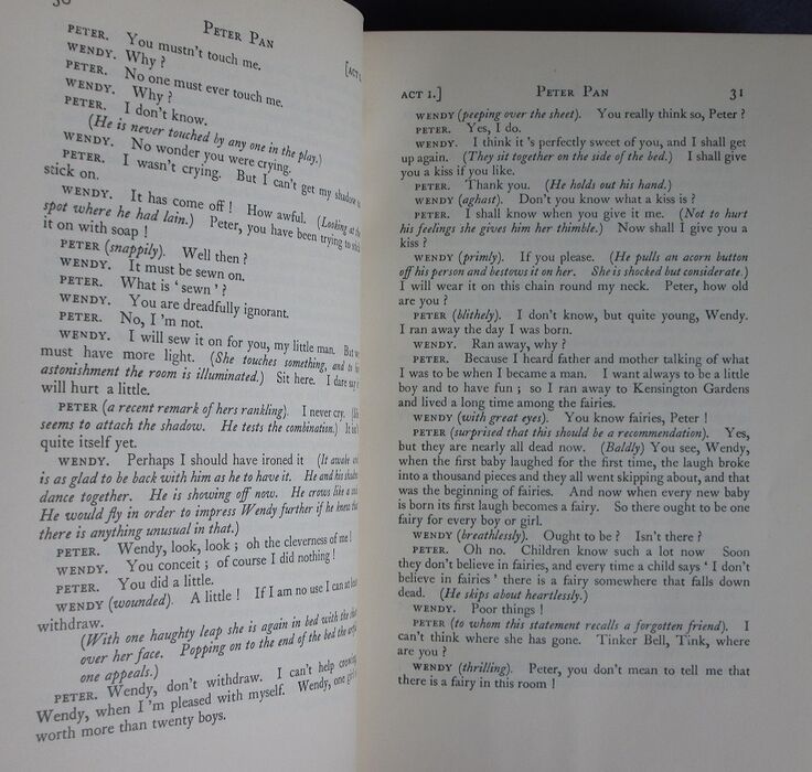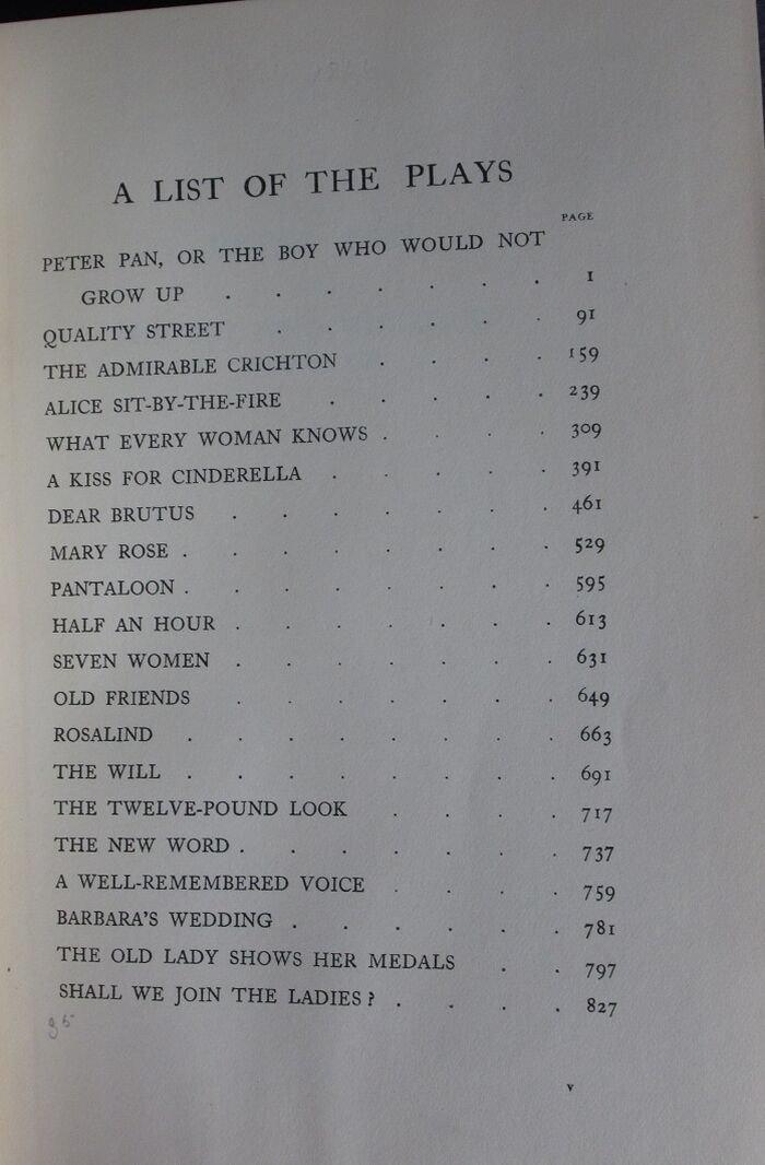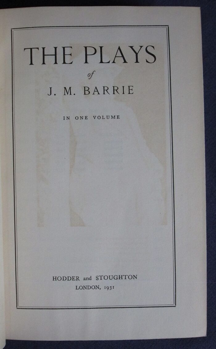 Hardback. Half bound in blue leather with red leather label and gilt titles to spine. Gilt decorations to spine compartment. Paler blue cloth to boards has gilt device with anchor. Plays include the children’s favourite Peter Pan, Quality Street which inspired the famous chocolates and The Admirable Crighton which was filmed in 1957 with Kenneth Moore in the title role. Text is a reprint but very unusual in this leather binding.
