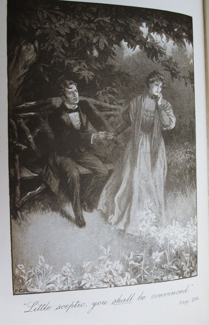 Hardback. 517pp. Victorian novel. Deep red leather binding with gilt titles to spine. Raised bands to spine with gilt floral design to five compartments with the gilt titles to the sixth. One compartment incorporates the Publisher’s initial N in the floral design. Black and white frontis with tissue guard. Floral line drawing to title page. Gilt to all edges. Maroon ribbon bookmark.