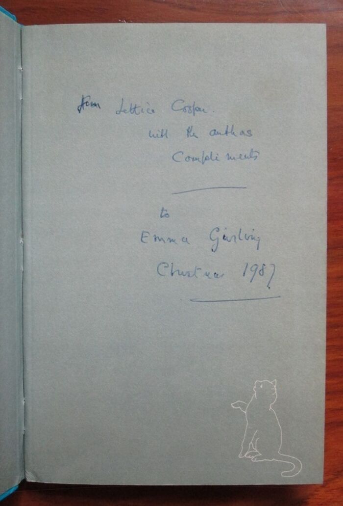 Hardback. Signed first edition. Children’s story about a cat, with two colour illustrations throughout by Rosie Evans. Signed and inscribed by Lettice Cooper to the endpaper and dated 1987. Lettice Cooper (1897-1994, aunt by marriage of the novelist Jilly Cooper) is best known for her adult novels which have been republished by Virago, Persephone Books and, for her one crime novel, the British Library Crime series.