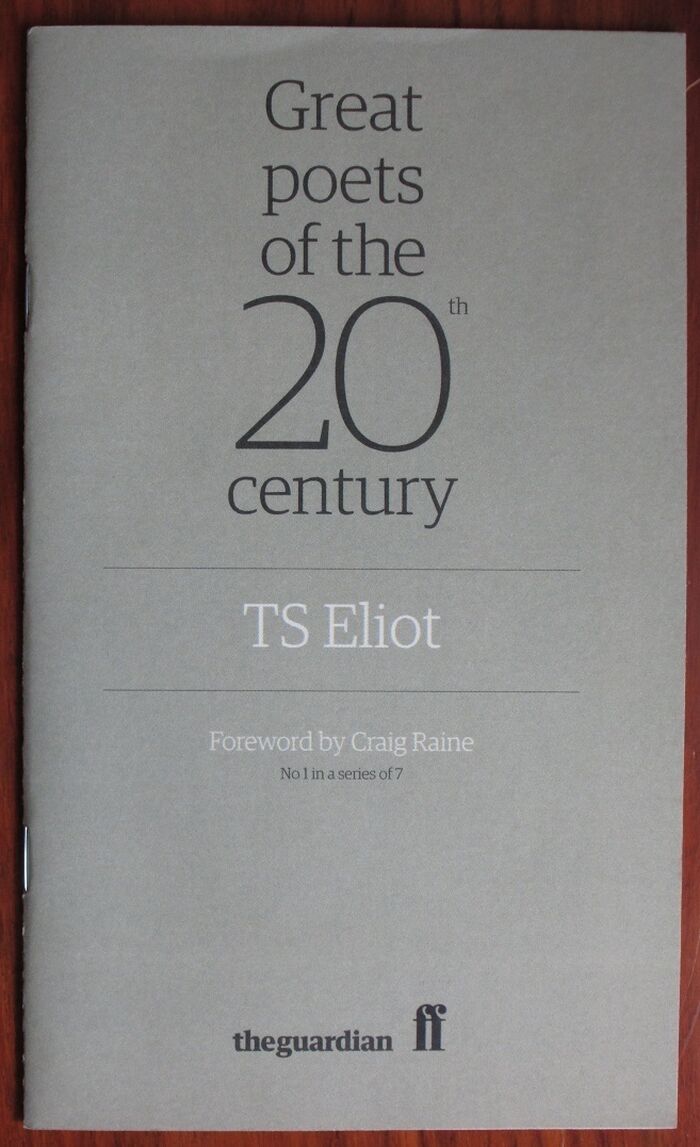 26pp. No. 1 in a series of 7 each about a different poet. Brief selection of Eliot's poetry with critical introduction by poet Craig Raine, also includes double page spread photograph, a facsimile manuscript, and 2 1920s Guardian reviews of Eliot's poetry.