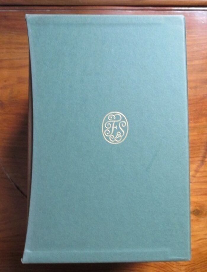 Hardback. Full cloth bindings each with the corn dolly illustration to the front. xvii,413+335+413+xix,418+xvi,314+xix,172pp. Introductions by Elspeth Sandys, Bell Mooney, Paul I. Webb, Angela Thirlwell and two by ‘RM’. Woodcuts by Peter Reddick throughout. Maps of Wessex to endpapers. Each volume bound in a different colour with print label and gilt titles to spines. Green slipcase with the Folio Society monogram in gilt.