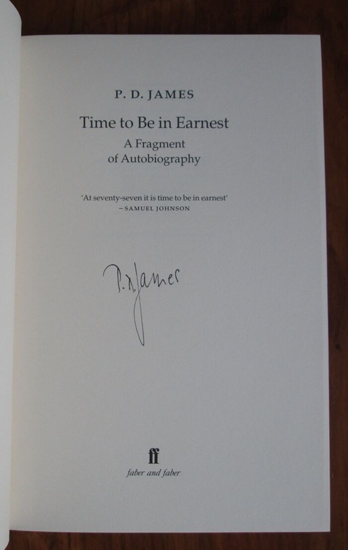Hardback. Signed by P. D. James to the title page. 454pp. First edition. Autobiography of the crime fiction novelist. Two small selections of black and white plates.