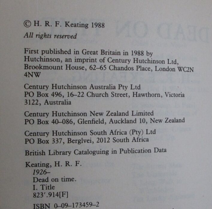 Hardback. Signed, first edition. Signed by H. R. F. Keating to the ffep. the 17th in the Indian-set Inspector Ghote mysteries. Keating was different times chairman of the Crime Writers' Association (CWA), chairman of the Society of Authors (1983–84) and president of the Detection Club. He was a fellow of the Royal Society of Literature. He was a previous winner of the CWA Gold Dagger Award winner and holder of a Cartier Diamond Dagger for services to crime literature.