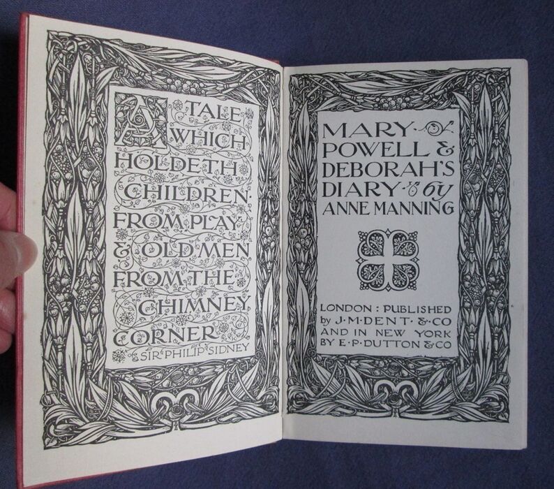 Hardback. xiii, 228pp. Two nineteenth century novels published here in one volume with an introduction by Irish writer Katharine Tynan. Mary Powell, originally published as The Maiden and Married Life of Mary Powell, afterwards Mistress Milton is the fictionalised the story of the young first wife of John Milton. Deborah’s Diary is the sequel from the point of view of their daughter Deborah complications from whose birth cost Mary her life. Everyman Library.