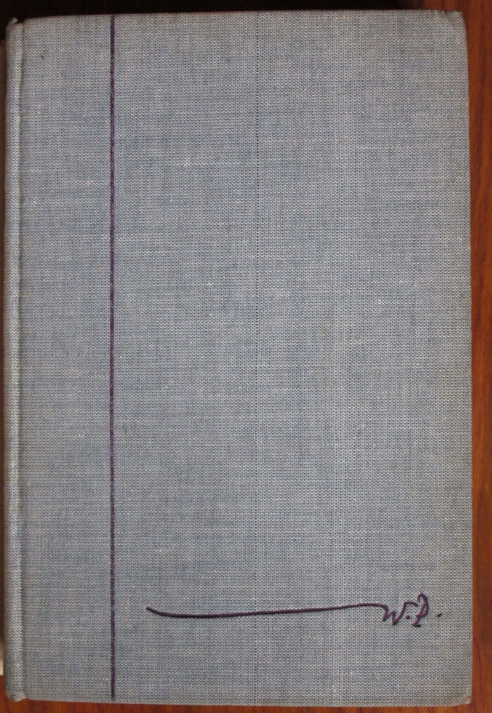 Notes Blue marl cloth with decorative printed purple labels and titles to spine and purple line and WP design to front is very clean but slightly bumped to points. Dust wrapper is a little faded and some edges wear including some closed tears and tiny chips. A little loss to Dust wrapper spine ends. WH Smith’s library label to endpaper but no other library marks. pen note to rear dust wrapper flap.