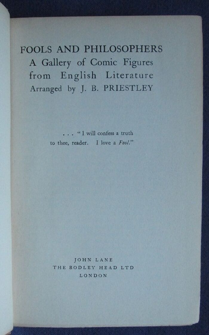 Hardback. 276pp. First edition. An anthology edited by playwright J. B. Priestley.