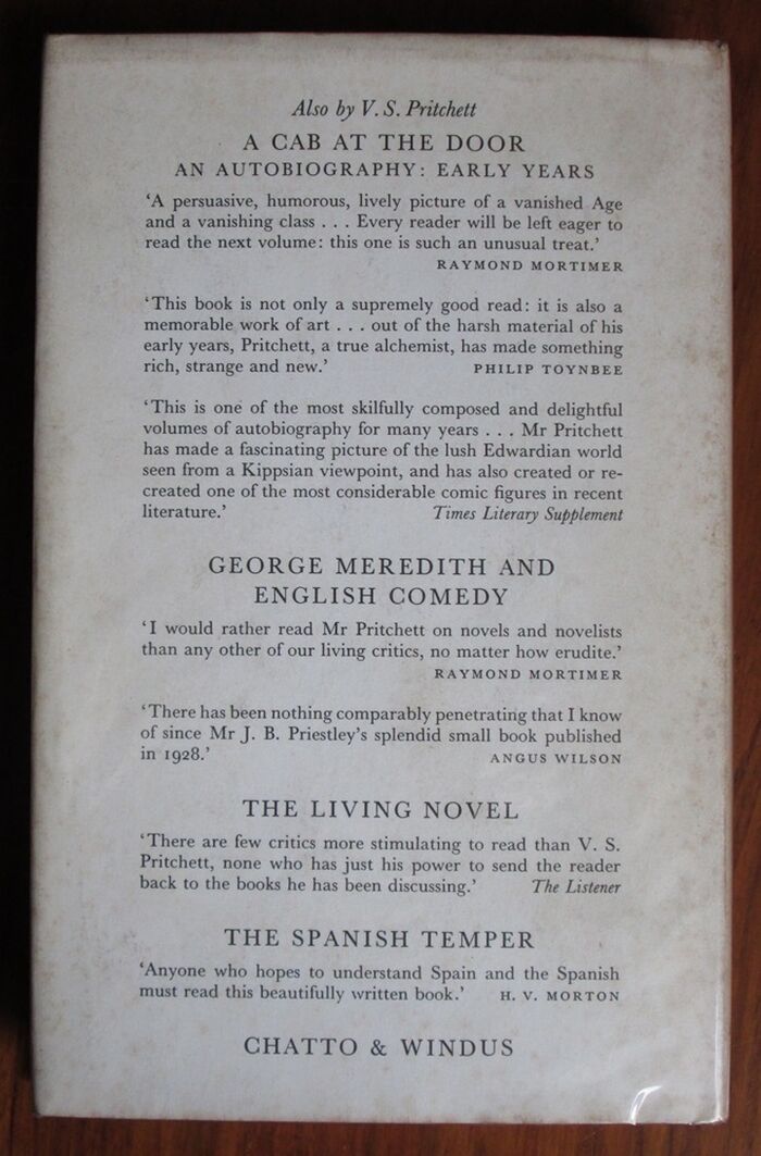 Hardback. 253pp. First edition. Second volume of novelist and short story writer V. S. Pritchett’s autobiography. Dust jacket design by John Sergeant.