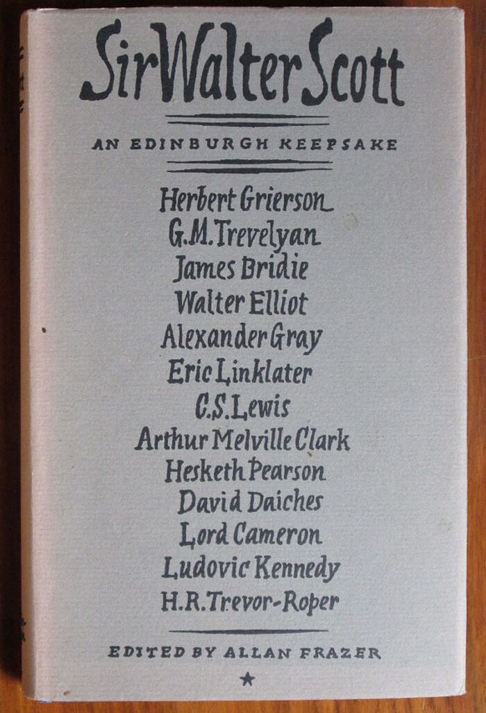 Hardback. 191pp. A selection of the speeches delivered by Presidents of the Edinburgh Sir Walter Scott club at their annual dinners from Herbert Grierson in 1927 to Hugh Trevor-Roper in 1971. the 13 speeches also include one by C. S. Lewis.