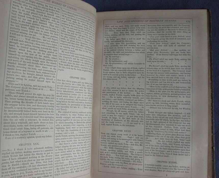 Hardback. xxiv. 455pp. Half bound contemporary calf with marbled sides. Leather to spine and corners with gilt decoration. Raised bands to spine with printed red label and gilt lettering. Decorative border to edge of leather including on the corners. Marbled end papers. Ex libris label. Illustrated title page. Text printed in columns. Three tickets to Shandy Hall and a illustrated small leaflet for shandy Hall laid in. Shandy Hall, Coxwold, Yorkshire was Stern’s home now run as a museum.
