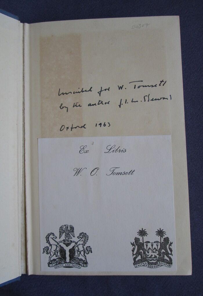 Hardback. 384pp. Signed and inscribed by J. I. M. Stewart. Signed to the title page and also inscribed to the endpapers “Inscribed for W. Tomsett by the author J. I. L. Stewart, Oxford 1963. also W. O. Tomsett’s bookplate to endpaper with coats of arms of Nigeria and Sierra Leone to front endpaper. J. I M. Stewart is best known as Michael Innes, crime writer. This novel is one of his non-crime fiction.