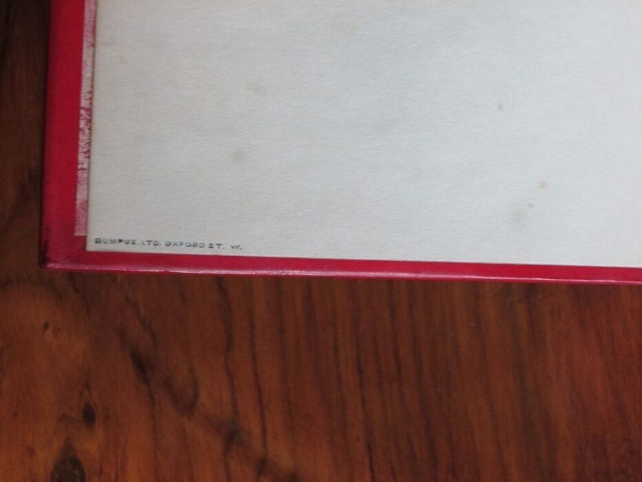 Hardback. 901pp. Engraved frontis. with tissue guard. Full red leather binding prettily decorated with raise bands to spine. Gilt titles to spine with a small gilt device to the remaining compartments. Gilt to all edges. Marbled endpapers. St. Paul’s Girls’ School monogram device in gilt to the front and prize label to endpaper. Bound by Bumpus: a very attractive leather binding with its restrained detail.