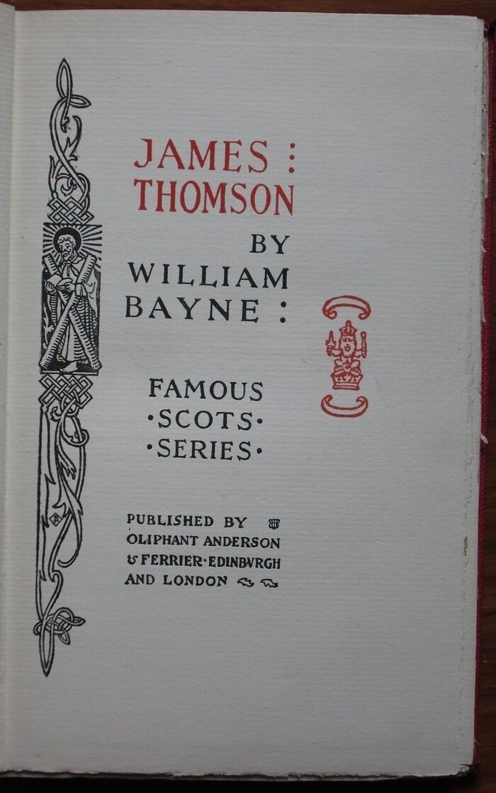 Hardback. Famous Scots series. Red cloth with gilt titles tand decoration to front and spine with gilt image of St Andrew printed onto cream also to the front. Title page hassome decorations in red and black and there are coats of arms to the endpapers in red.. Decorations by Joseph Brown. Pages uncut. No date but preface dated 1898.