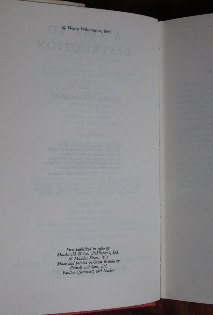 Hardback. 461pp. War novel. First edition. The eighth in the sequence A Chronicle of Ancient Sunlight. The illustration to the back by C. R. W. Nevinson (an offical WWI artist) was given to Williamson by the artist and is a preparatory treatment for his painting 'A Group of Soldiers'