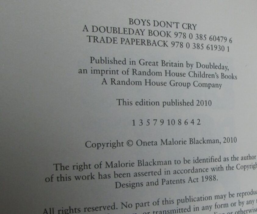 Hardback. First edition, first printing with complete numberline. 302pp.+ questions for readers section, useful for book clubs. Malorie Blackman is best known for her Noughts and Crosses series.