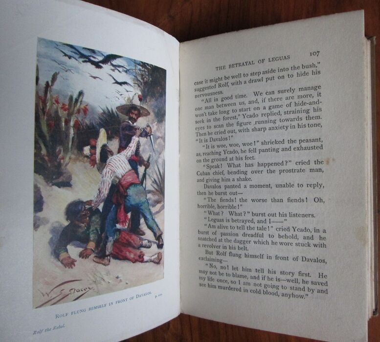 Hardback. 224pp. Adventure story set in Cuba. Illustrated by W. S. Stacy. Colour frontis. and a second colour plate. Pictorial cloth binding. Brown cloth illustrated in dark brown and light blue.
