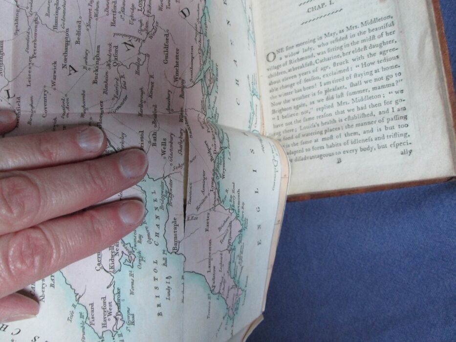 Hardback. Travelogue written in a lively manner more like a novel with fictional travellers, the Franklin family, to appeal to young adult readers of the time. Full period leather binding. 443pp+notes and publisher's catalogue. Original calf spine with slightly later calf binding. The rebacking has been done many years ago. Black label with gilt titles to spine appears original. Fold-out, colour map, appears hand-coloured, of the British Empire. Contemporary owner’s name neatly to title page in ink. Priscilla Wakefield was from a Quaker family and was descended from the Barclay family of bankers and was he maternal aunt of Elizabeth Fry. She supported, and wrote about, a range of women’s issues including, in 1798, Reflection on the Present Condition of the Female Sex which was published by Joseph Johnson. Johnson was a radical, who also published works by other women writers including Mary Wollstonecraft and Anna Laetitia Barbauld as well as other radicals and dissenters such as Wiliam Godwin, Joseph Priestly and Erasmus Darwin.