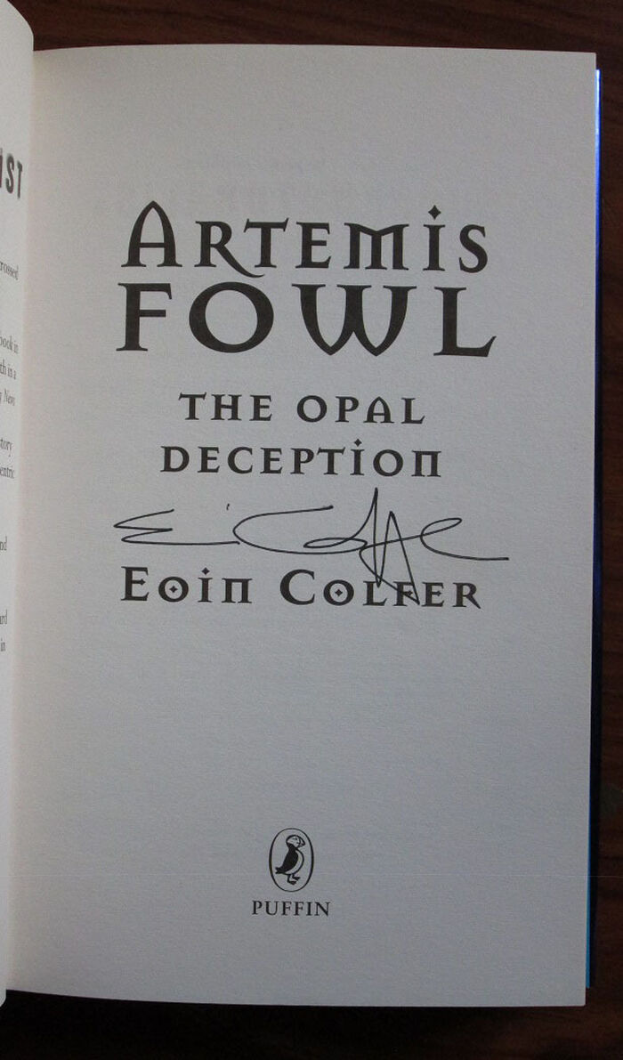 Hardback. 343pp. Signed by Eoin Colfer to the title page. First edition, first printing. With matching promotional book mark. Colour illustrated boards and dust jacket with transparent shaped windows to the board below.