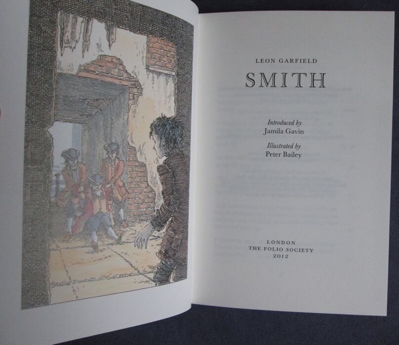 Hardback. Leon Garfield’s classic tale of Victorian London. For older children. Introduced by Jamila Gavin. Illustrated by Peter Bailey. Colour frontis. and 7 further colour plates. Beige paper to front board illustrated in black with gilt highlights with the rest bound in black buckram, with gilt titles to spine. Beige slipcase. First Folio Society edition.