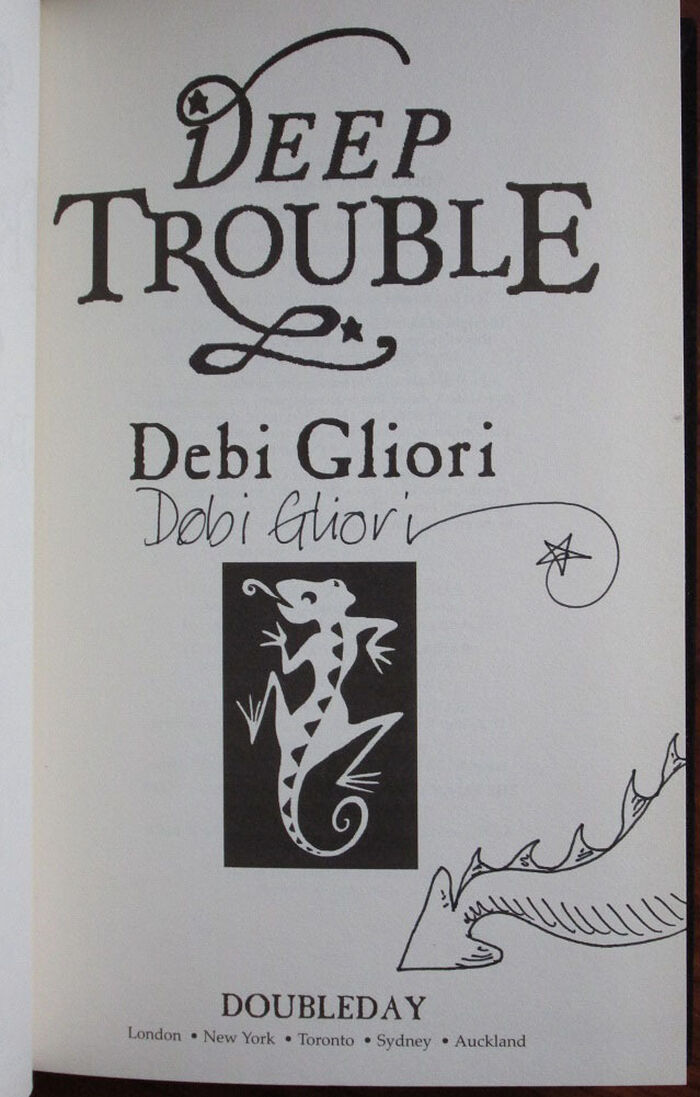 Hardback. 317pp. Signed by Debi Gliori with a hand drawn lizard tail in addition. First edition, first printing. Fourth in the Pure Dead series of these books for older children. Attractively bound in a black velvet or faux suede with decorative gilt titles, a gilt image of a lizard, and a gilt stars to the front, gilt stars to the back, and gilt titles to spine. Black and white drawing panels to first pages of chapters.