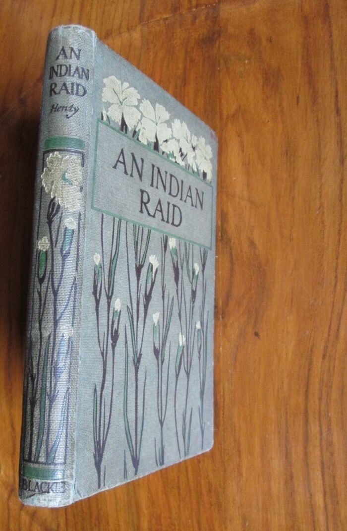 Hardback. Olive papers to boards decorated in cream, green and brown with stylised flowers. Black and white frontis. No date but school prize note to endpaper is dated 1921.