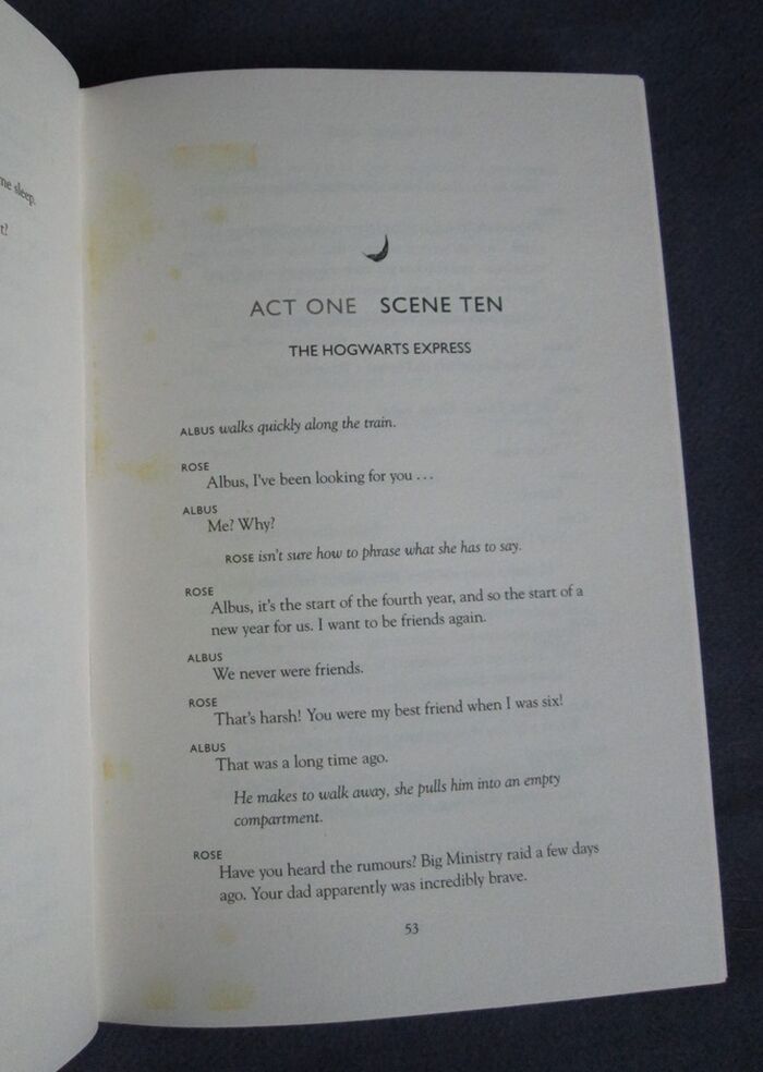 Hardback. 337pp. First edition, first printing with complete number line. The story, the eighth in the Harry Potter series, was performed as a two-part play written by multiple BAFTA award winning Jack Thorne and directed by Jack Tiffany. Complete list of cast and creatives to back. Illustrated endpapers.