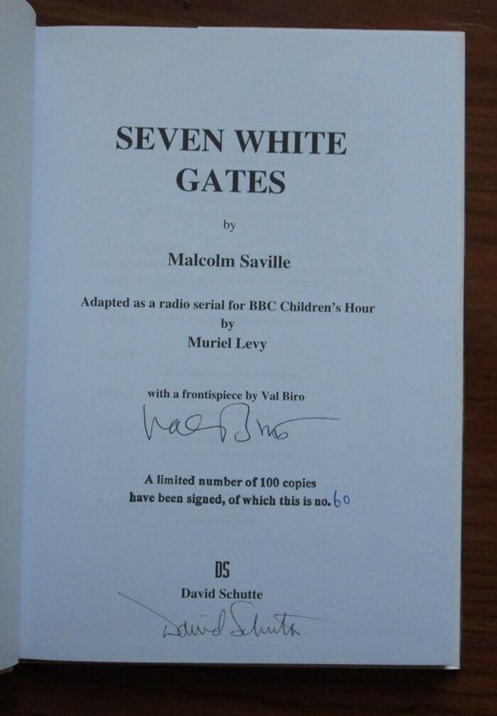 Hardback. Signed by Muriel Levy and publisher David Scutte, this is no. 60 of a limited edition of 100 copies. Adapted as a radio serial for BBC Children’s Hour by Muriel Ley. Colour illustrated dust jacket and black and white frontis both by Val Biro. Introduction by Mary Cadogan.