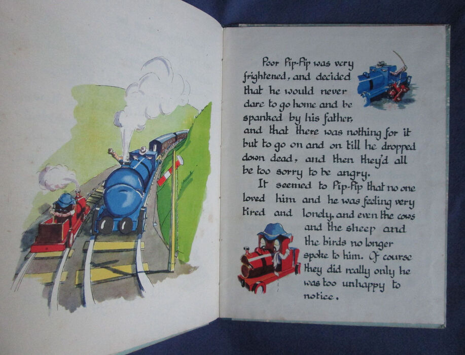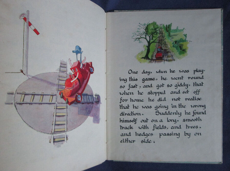 Hardback. First edition. Unpaginated [28pp], a handwritten-style calligraphic text. Colour illustrated papers to boards and colour illustrations throughout including 8 full page. The closely written text (it is only 28 pages but it is quite a substantial story) also features one or two integral colour pictures to each page. Illustrations to endpapers. Navy cloth spine. Hard to find as a first edition and an unusually attractive production for war time.