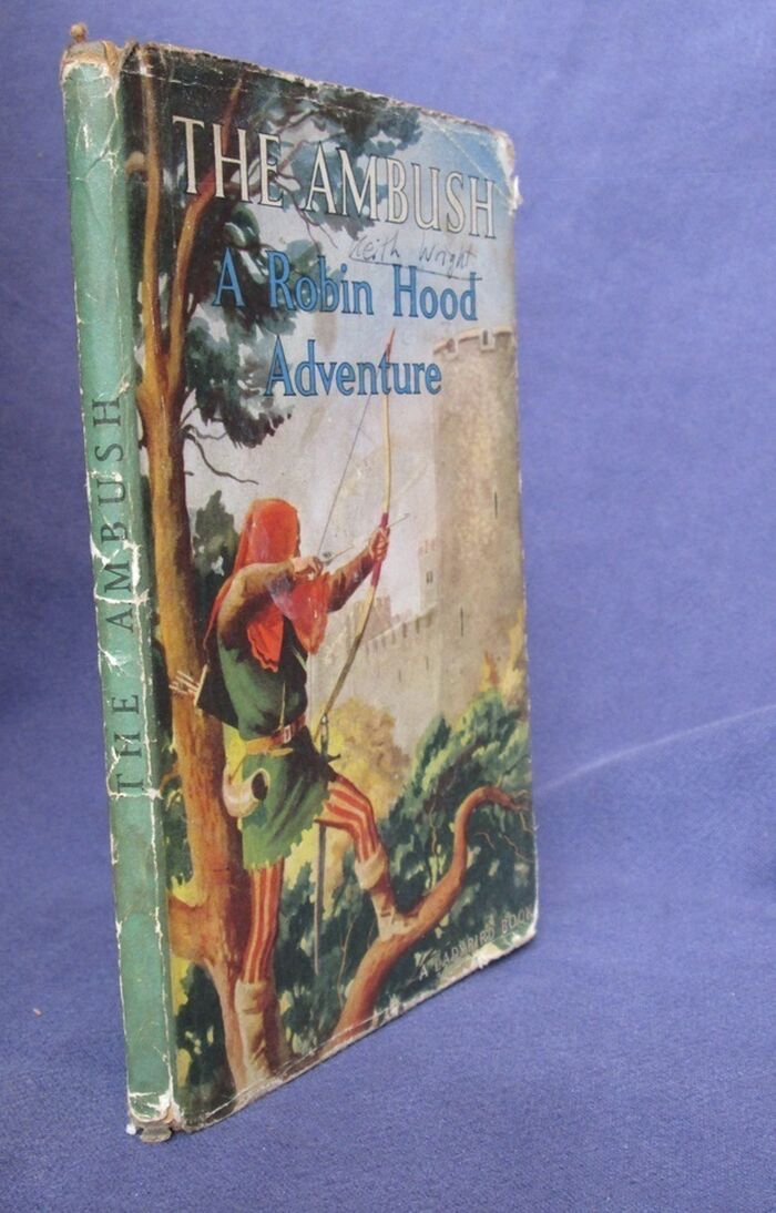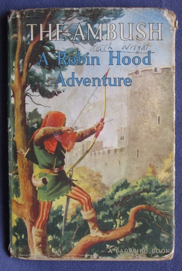 Hardback. 52pp. A ladybird Robin Hood Adventure. Illustrated by John Kenney. Ladybird series 549. Very early printing with the text going from bottom to top on the spine, open winged brown ladybird pattern to endpapers, and open winged blue logo, meaning the book is pre 1960. The book also does not have the printed catalogue at the back dating if from 1958 onwards.Good+, sound copy in good dust jacket Hardback