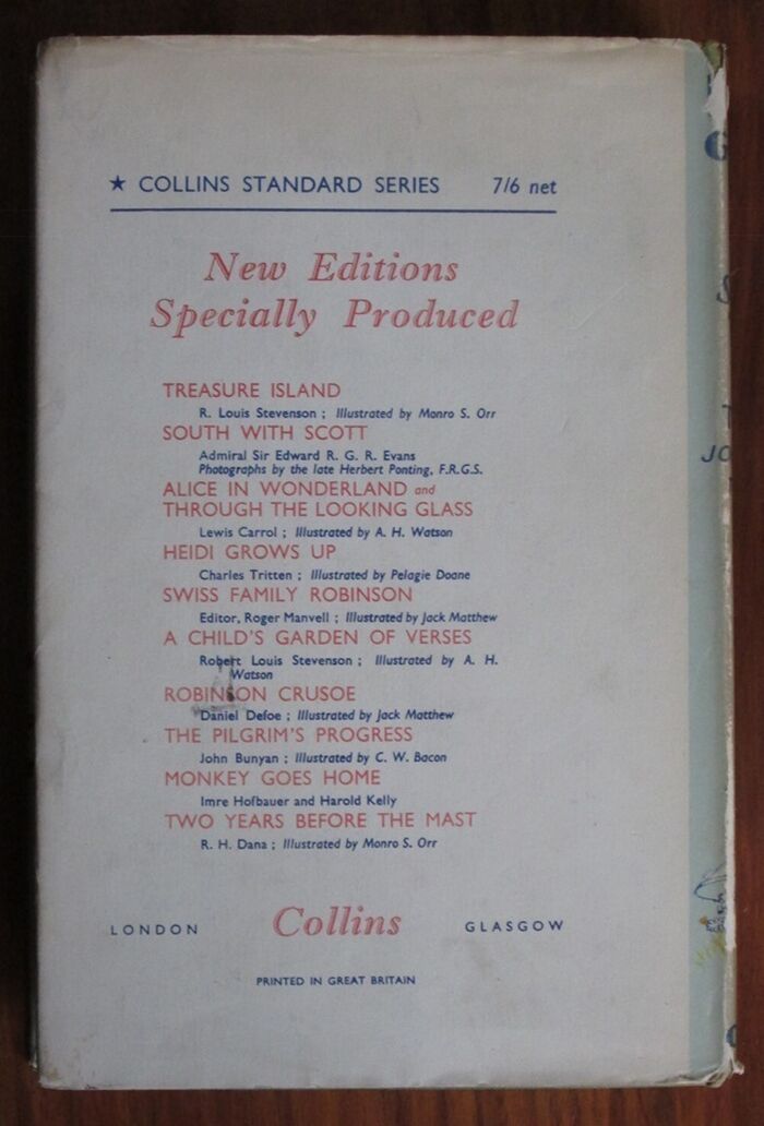 Notes Cloth is very clean but unevenly faded to wards the edges. colour illustrated dust jacket is somewhat dust marked and a little edge worn with some tiny nicks and ships and a short closed tear. Dust jacket spine is tanned. Not price clipped.