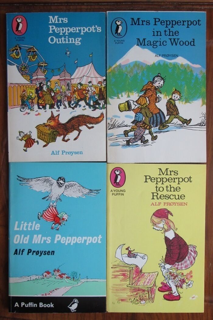 Paperback. 4 titles in slipcase: Mrs Pepperpot in the Magic Wood, Mrs Pepperpot's Outing, Mrs Pepperpot to the Rescue, Little Old Mrs Pepperpot. Translated by Marianne Helweg. Illustrated by Björn Berg.