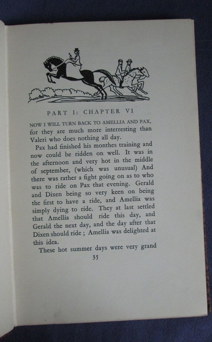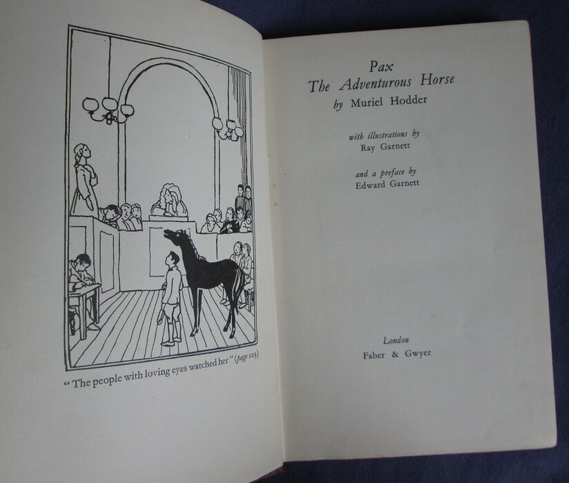 Hardback. 127pp. Written by the 11 year Muriel Hodder and apparently suppressed by her family for nineteen years, this children’s story is a first edition with a six page preface by Edward Garnett and frontis and further black and white illustrations to chapter headings by Garnett’s daughter-in-law Ray Garnett [ Rachel Marshall]. Mottle pattern maroon cloth with gilt titles to spine and a gilt device with a horse to the front.