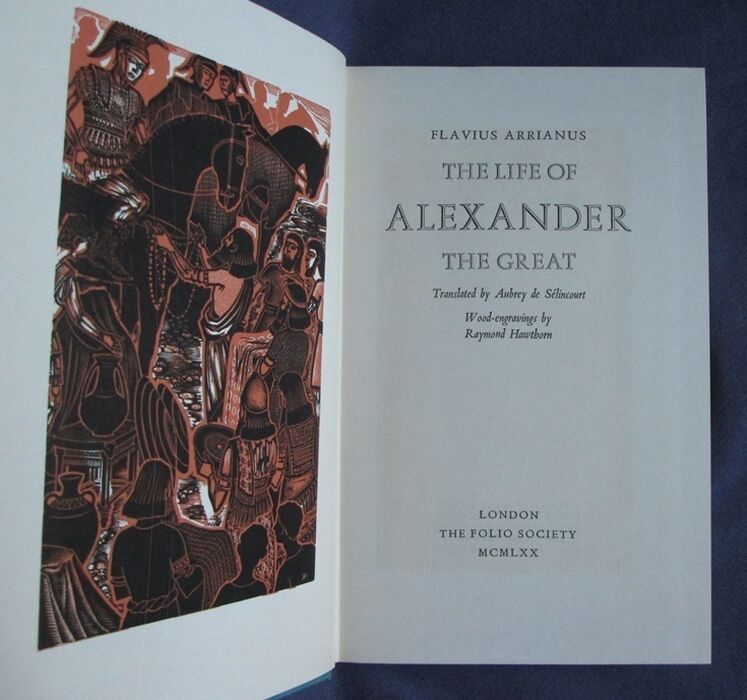 Hardback. Translation of the Anabasis of Alexander by Lucius Flavius Arrianus also known as Arrian of Nicomedia, a Greek historian of the Roman period. Wood engravings by Raymond Hawthorn: two colour frontis and 9 further two colour plates. Maps to endpapers and further maps throughout. Bound in blue cloth with silver medallion to front and lettered in silver to the spine. Red slipcase.