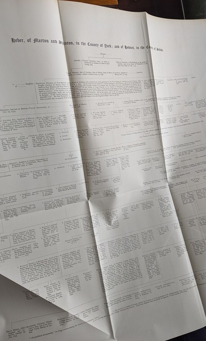 | Notes | Few minor scuffs to the raised bands and to the head and tail of the spine. The fold-out pedigrees, many of which are very large with multiple fold-outs are generally in excellent condition though around half have one very short tear (about an inch long) near the gutter. The pedigrees are otherwise clean and crisp with sharp folds. The only exception is the largest pedigree, that of the Cliffords of Skipton Castle, this has more significant tears including one of several inches along a fold and at least two v shaped tears to the text. There is no loss of text to the Clifford pedigree. There is a short, one inch, tear to the lower margin of page 513. Faint, few foxing marks to the close page edges. There are a few instances of pencil annotation referring to other research. The book is otherwise very clean and neat. A really very nice copy. |